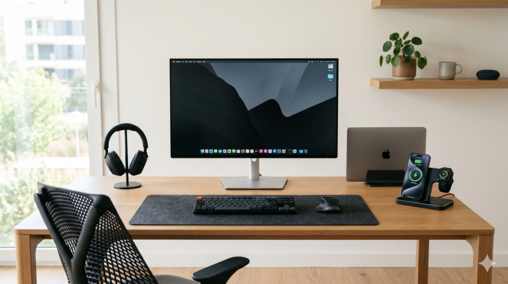 Eso sí, la idea no es llenar el escritorio de gadgets. En un espacio minimalista, la tecnología debe ser discreta, útil y coherente con el conjunto. Menos aparatos, pero mejor elegidos, suele ser la fórmula más efectiva.